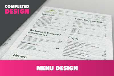 I can design a professional menu for your restaurant, cafe or takeaway.All I need from you is the correct menu in word (or similar) format and any logos that you want on. I'll then create a menu branded perfectly to suit your business.
